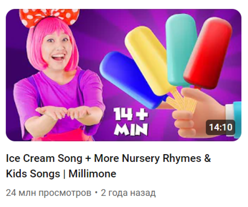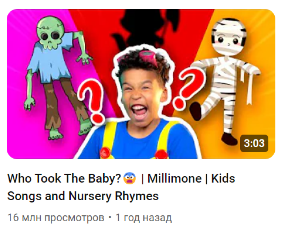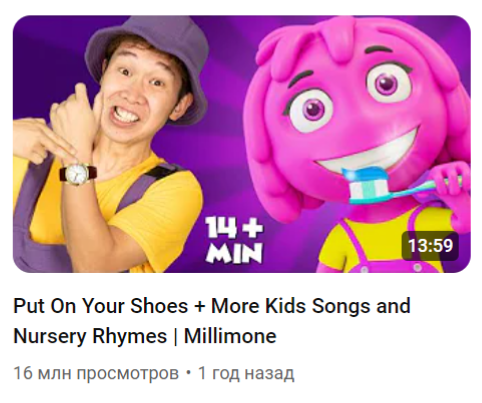 Основную аудиторию канала Millimone составляют дети в возрасте от 3 до 10 лет и их родители. География наших зрителей охватывает США, Индия, Индонезия, Россия. Наша аудитория активно вовлекается в контент, что делает её идеальной для продвижения детских товаров и услуг